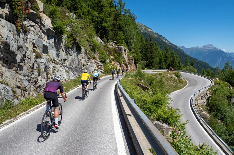 The key is to be comfortable when road cycling as you will be sat on the saddle for hours. It is always good to wear breathable, lightweight clothing and it is often a good idea to take a thin windproof jacket with you for descents in the Alps as they can be chilly. Lycra padded shorts are the best thing to wear as they protect you from getting saddle sore. Sunglasses or clear lens glasses are great to wear not only to protect you from the sun, but also to help with the wind.