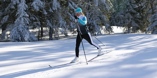 The easiest style to get into first is classic cross country skiing because it can be adapted to skiers of all levels, abilities and fitness. With classic cross country, you have the option of going fast or slow with the safety of being on a groomed track. Skiing on groomed pistes also gives you a certain level of confidence as the grooves in the snow help to keep your skis on track. Once you’ve mastered this technique, definitely give Nordic a go for more variety in routes.