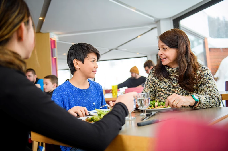 In a few words, our family weeks have everything you need for a great ski holiday included in the price, but without the frills. All inclusive means hassle-free. UCPA centres are purpose built for group activities, so equipment is issued at the centre, lessons start and finish there, dinner is cooked and provided buffet style in a large canteen/dining room, and there are social areas such as bars and lounges for spending social time in the evening.