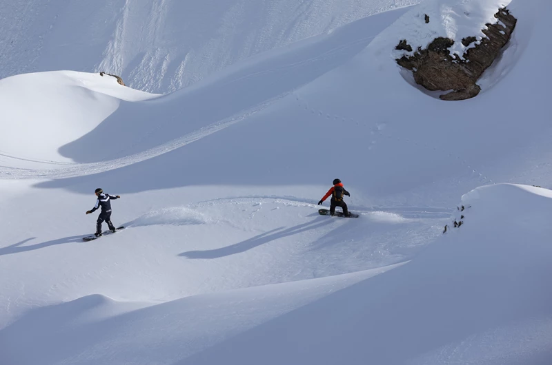 With over 300km of piste there is plenty to keep you occupied throughout your stay and a good spread across all the grades. For beginners there are special ‘tranquil’ zones in which strict speed limits are enforced making for a much more enjoyable experience. At the other end of the scale there are a number of ‘Naturide’ runs in Tignes which are non-pisted but within the patrolled area, a great concept taking away some of the additional risk of off piste skiing for the more advanced skiers and boarders looking to venture into the back country.