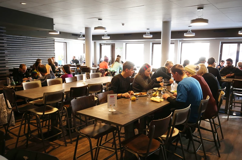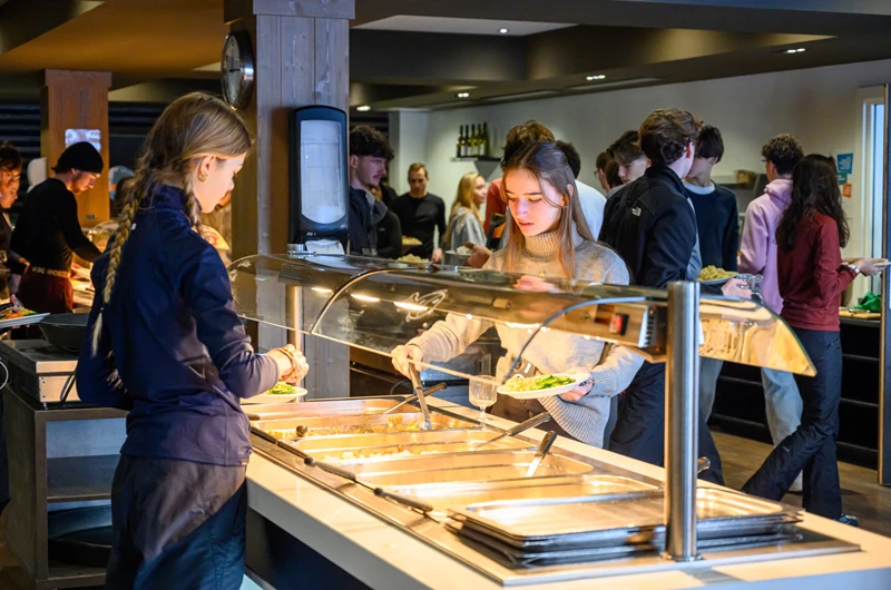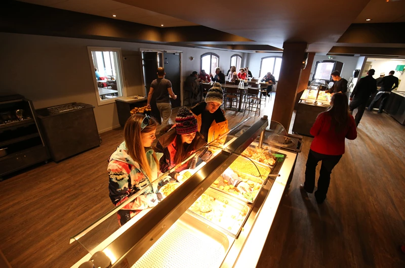 It is possible to return to the centre for lunch everyday where you will find 1 or 2 hot options available. As with all meals there will be a salad bar, plenty of bread, cheese, meat and of course desert. If you prefer you can make a packed lunch at breakfast time and eat on the mountain. Either way you will save a fortune avoiding the piste side restaurants.