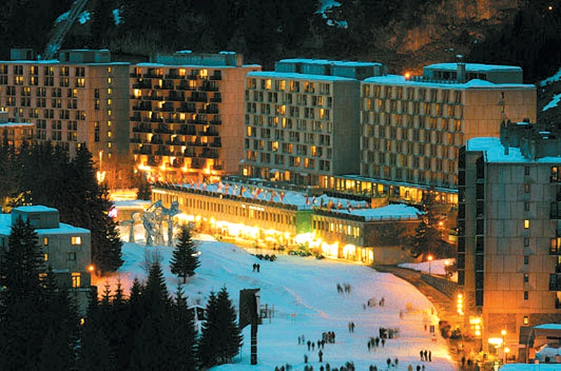 Flaine may be known as the 'concrete resort', but the views from the slopes are more than traditional. However you might feel about the architecture, the town has a lot going for it. It is convenient in so many ways, from getting to resort, to easy accessibility with pedestrian lifts to get around. For other stuff to do, there is a swimming pool and spa, a bowling alley, cinema and plenty of artwork to spot around the quasi brutalist alpine town.